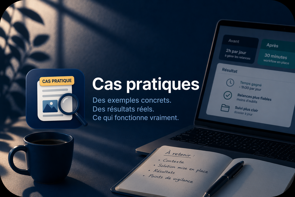 Des exemples concrets et détaillés pour voir comment une automatisation ou un usage IA tourne dans la vraie vie, avec ses gains, ses limites et ses points de vigilance.